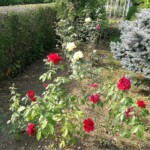 Nun da sich die Hecke wieder auf ihrer Höhe von ca. 1,20 m befindet, sind zudem meine wunderschönen blühenden Rosen und Kübelpflanzen für die vorbeispazierenden Gartenfreunde sichtbar. Diese möchte ich euch natürlich nicht vorenthalten. 😀